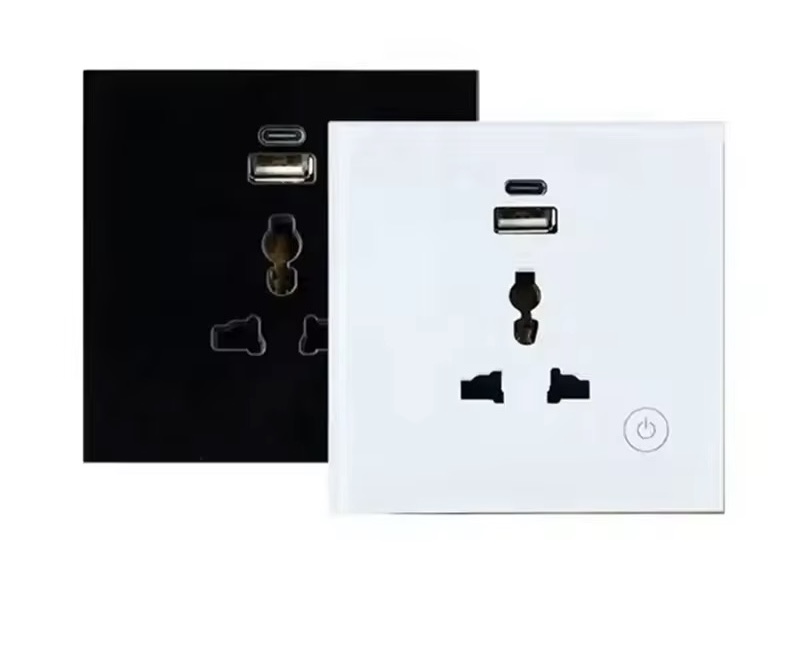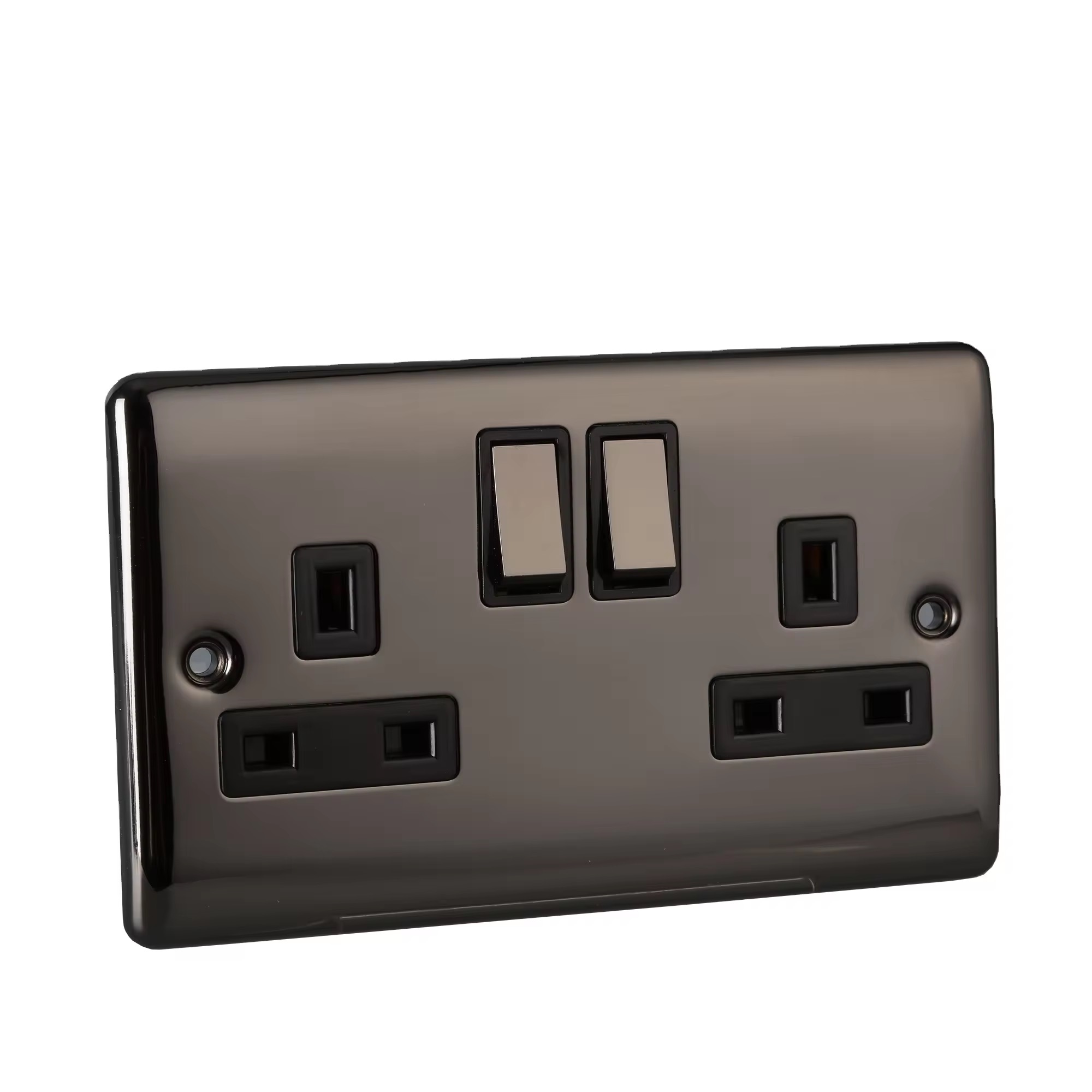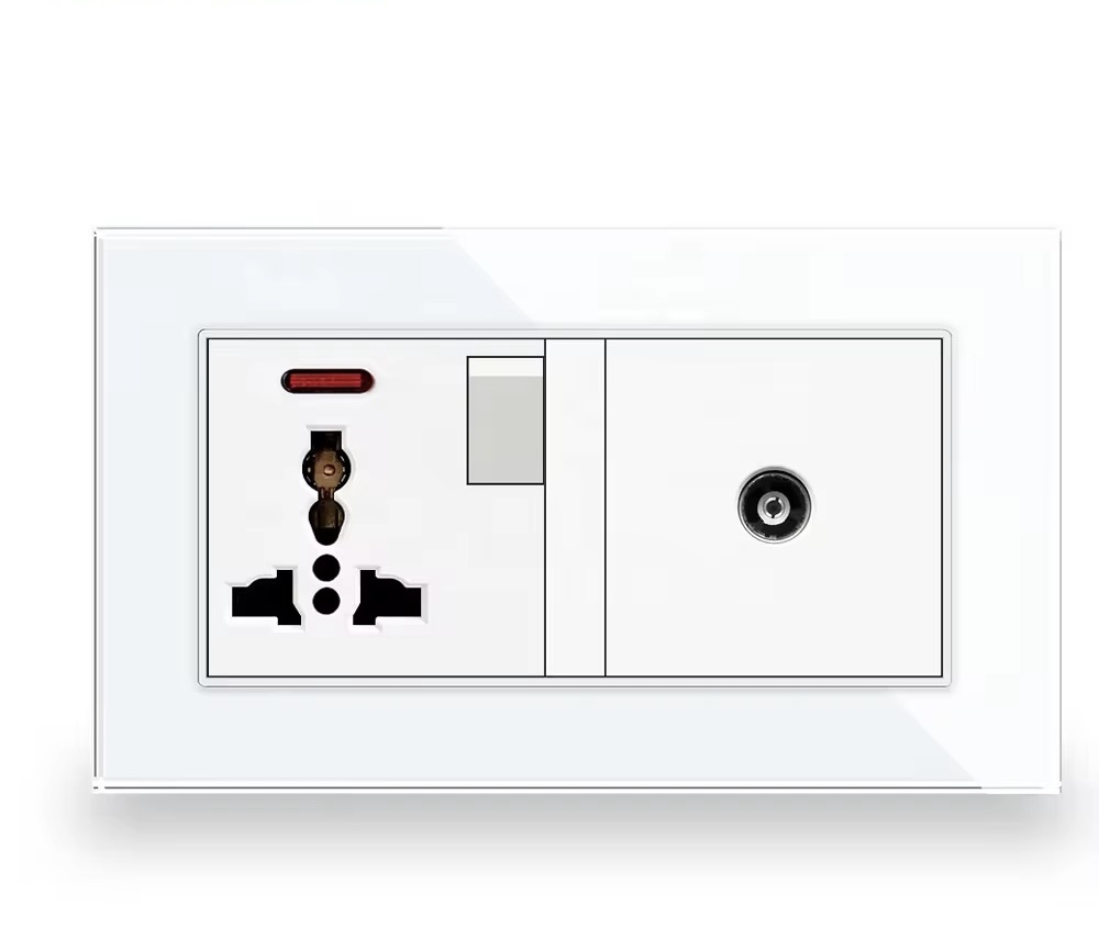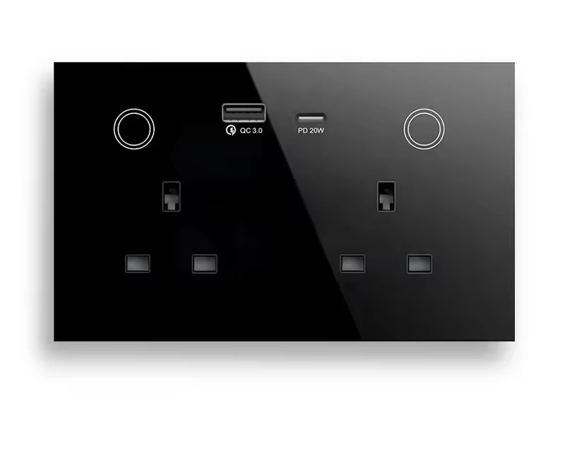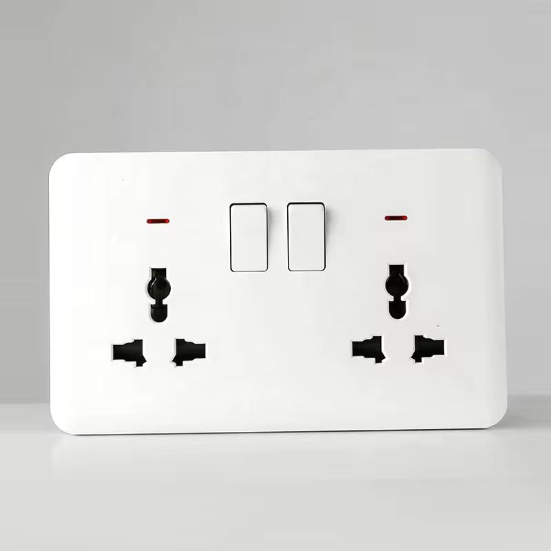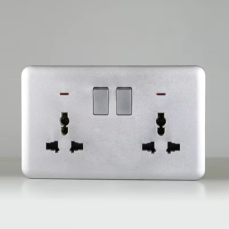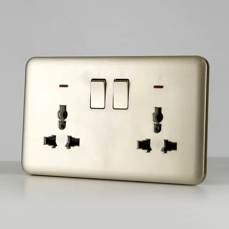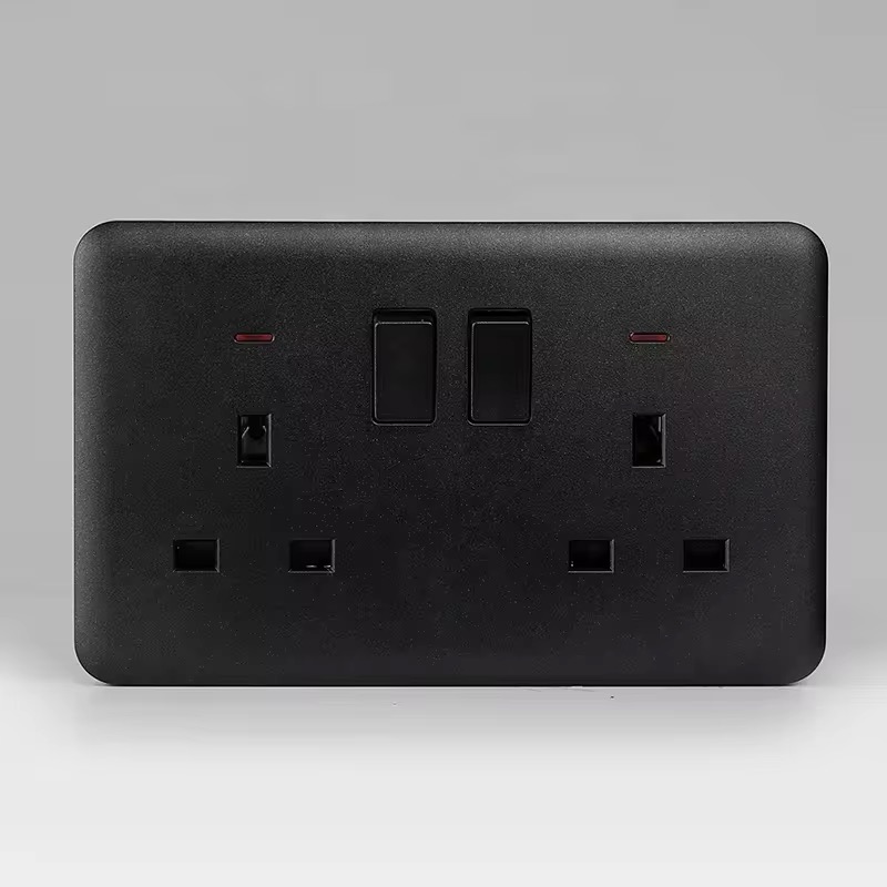 Wall socket panel, two positions, two pairs, 13A British style socket with switch